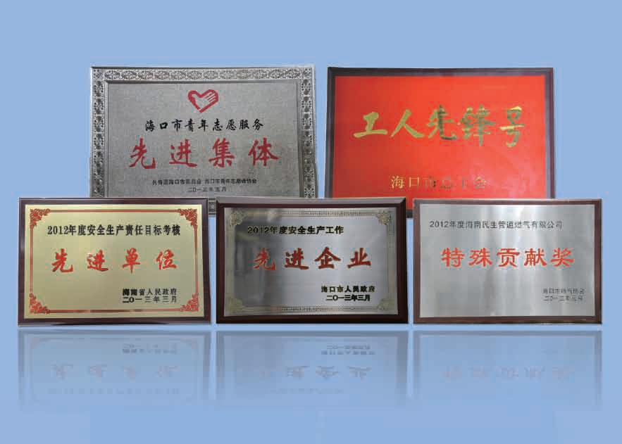 榮獲金融貸款誠信企業(yè);海口市人民政府頒發(fā)的2012年度安全生產(chǎn)工作先進企業(yè)。