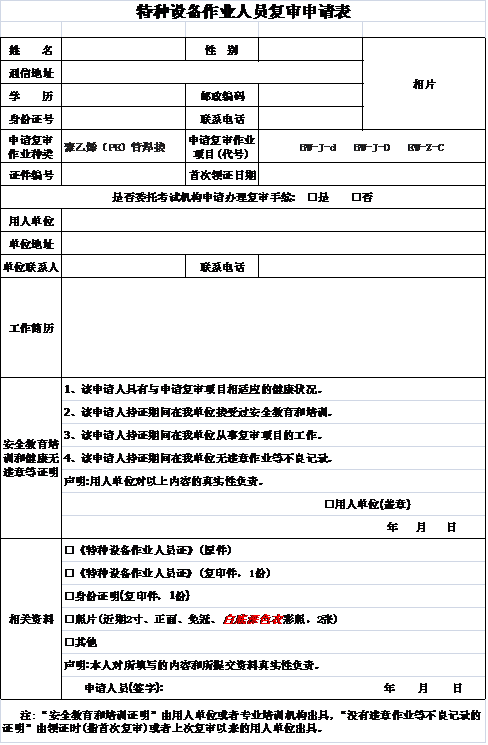 特種設(shè)備焊接操作人員復審考試申請表