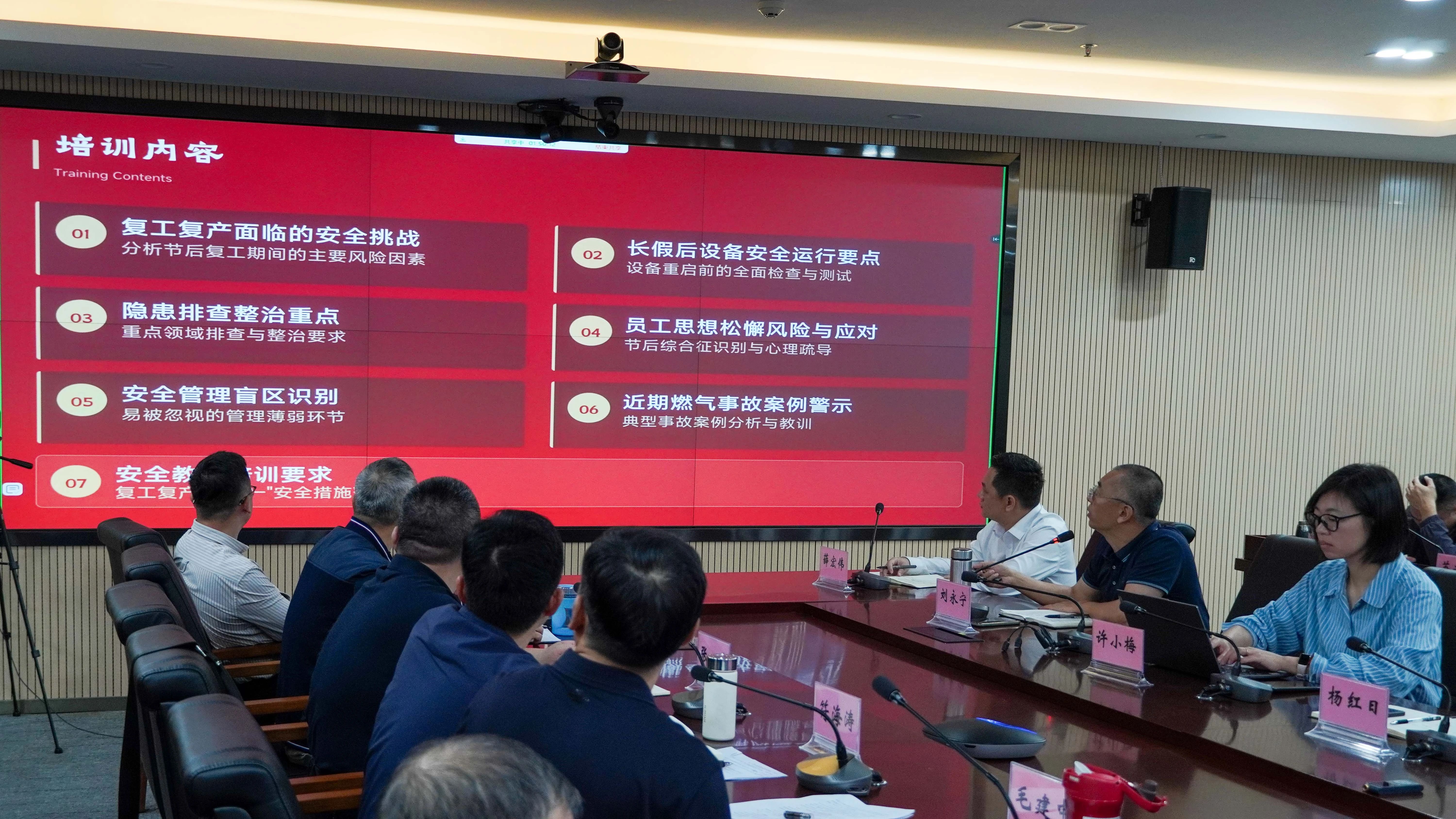 會(huì)上,各單位匯報(bào)復(fù)工復(fù)產(chǎn)準(zhǔn)備情況及安全生產(chǎn)工作部署進(jìn)展。海南民生燃?xì)獍布疾扛笨偨?jīng)理劉永寧圍繞節(jié)后復(fù)工復(fù)產(chǎn)面臨的安全挑戰(zhàn)、長(zhǎng)假后設(shè)備安全運(yùn)行要點(diǎn)、隱患排查整治重點(diǎn)、員工思想松懈風(fēng)險(xiǎn)與應(yīng)對(duì)、安全管理盲區(qū)識(shí)別、安全教育培訓(xùn)要求及典型事故案例七大板塊,開(kāi)展復(fù)工復(fù)產(chǎn)安全教育專題培訓(xùn),為新一年安全工作筑牢思想根基。
