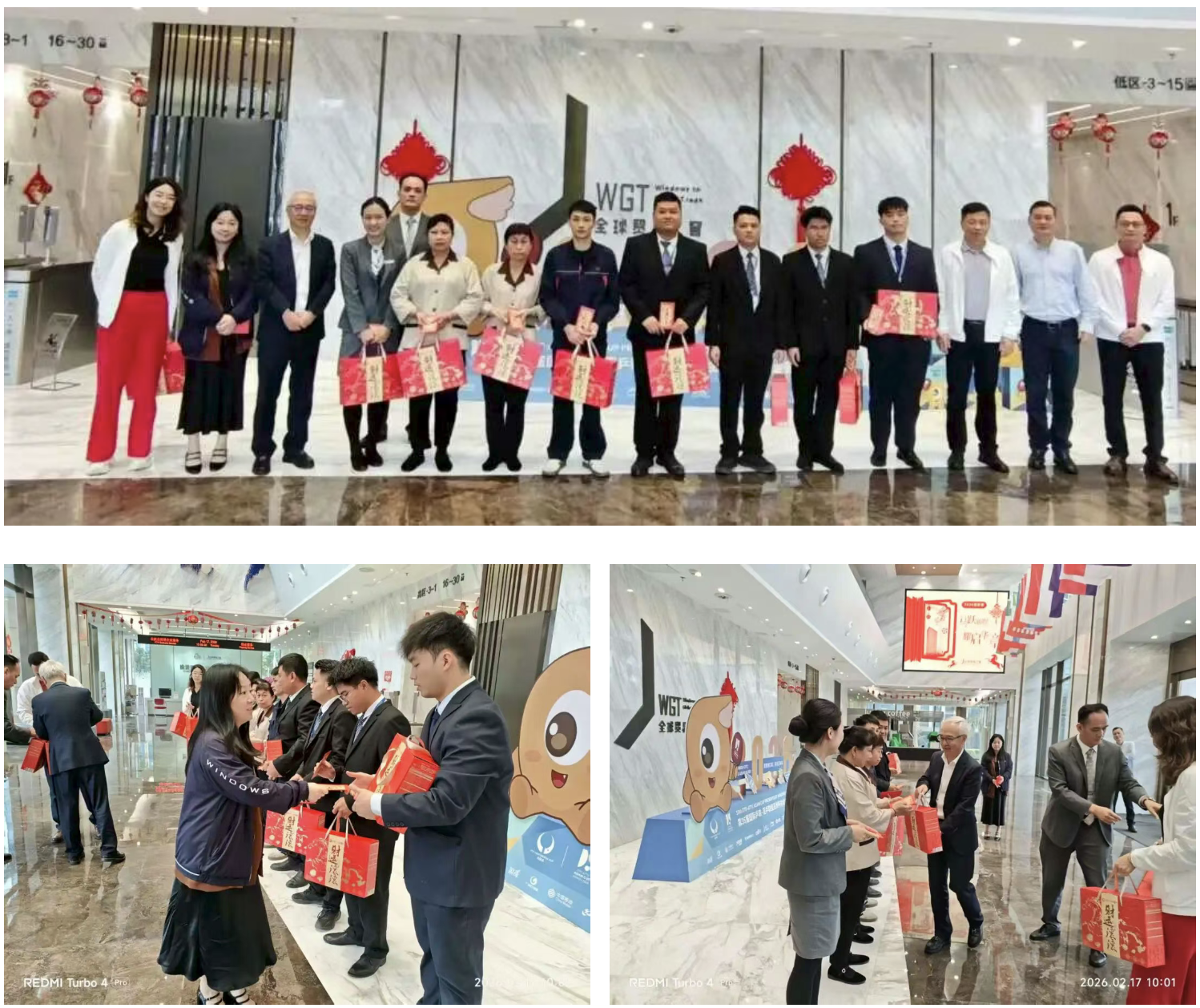 在全球貿易之窗大廈,萬明董事長一行視察了解大樓的運行保障情況,對節日期間依然奮戰在崗位上的工作人員送上了誠摯的慰問與新春寄語。